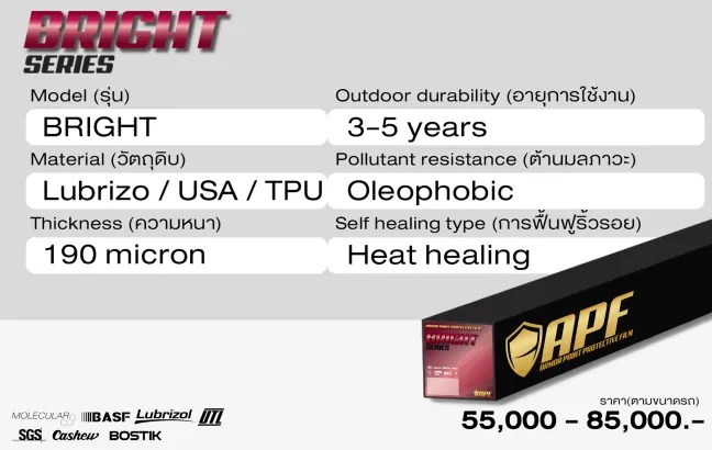 ยินดีต้อนรับเพื่อนๆเข้าสู่อาณาจักรฟิล์มใสกันรอยรถยนต์ภายใต้แบรนด์ Arm@z และ APF ที่ออกแบบมาเพื่อการให้งานได้ครอบคลุมที่สุด ถึง 9 ซีรี่ส์ ทั้งในเรื่องความเงางาม และการปกป้องอย่างตรงจุด เพื่อเป็นประโยชน์ในการเลือกฟิล์มใสกันรอยที่เพื่อนๆจะได้ถูกใจที่สุด ด้านล่างเรามีคำอธิบายคุณสมบัติต่างๆแบบฉบับย่อให้เพื่อนๆเข้าใจง่ายและเห็นภาพกันเลยนะครับ