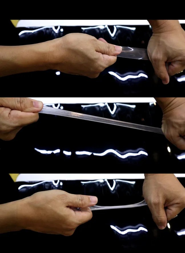 High Molecular (TPH) มีความโปร่งแสงสูง เนื้อวัตถุดิบขาวเมื่อผลิตเป็นแผ่นฟิล์มกันรอยแล้วนำมาติดตั้งจึงไม่เกิดความเหลื่อม เหลือง